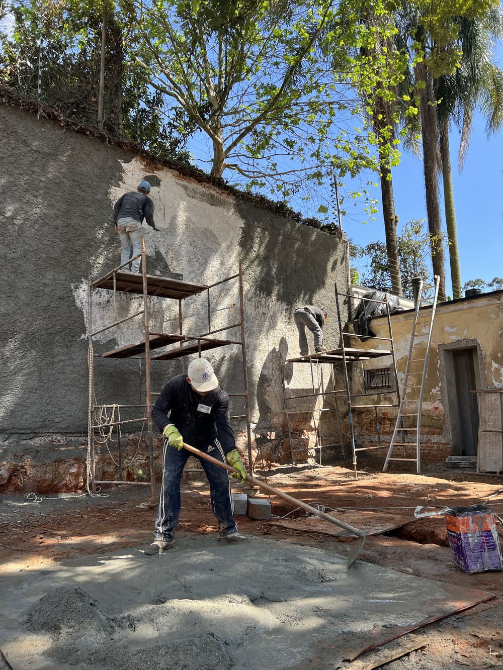 Engenheiro, zelador e assistente de obra dedicados ao seu projeto do início ao fim.